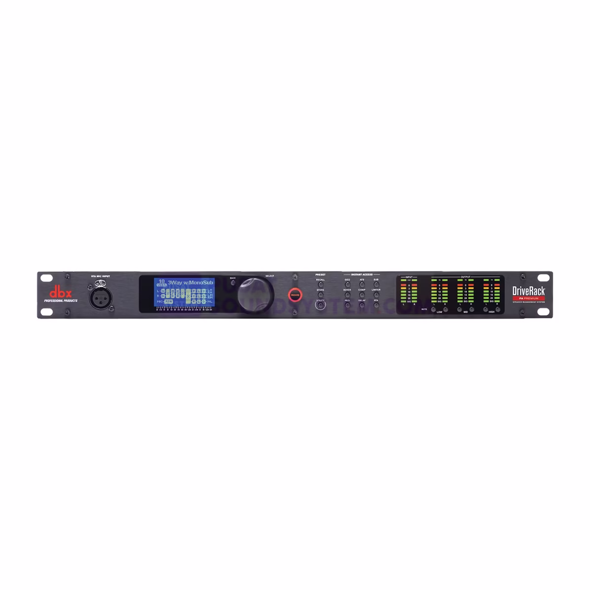 The DriveRack® Premium provides all the processing you need between your mixer and amplifiers to optimize and protect your loudspeakers. With the latest advancements in dbx’s proprietary AutoEQ™ and AFS™ algorithms, a new input delay module for delaying the FOH system to the backline, Ethernet control via an Android®, iOS®, Mac®, or Windows® device, and updated Wizards, the DriveRack Premium continues the DriveRack legacy of great-sounding, powerful, and affordable loudspeaker management processors, for a whole new generation.