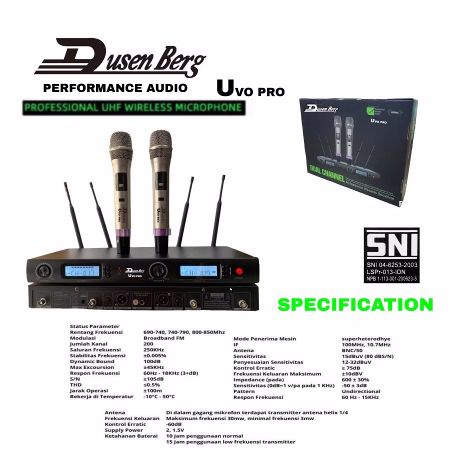 π€ Mic Wireless Dusenberg Profesional β 200 Channel β’ Jangkauan 100m β’ Original SNI