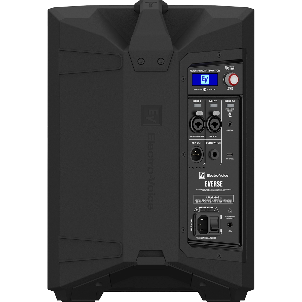 EVERSE 8 is driven by a high-efficiency Class-D amplifier and DSP module developed in collaboration with the world-class audio electronics engineering team at EV’s sibling brand Dynacord. Pro features include a built in four-channel digital mixer with studio-quality effects and processing, 48 V phantom power, feedback suppression and audio ducking. Between the EV and the D badges, you get the best of both worlds.