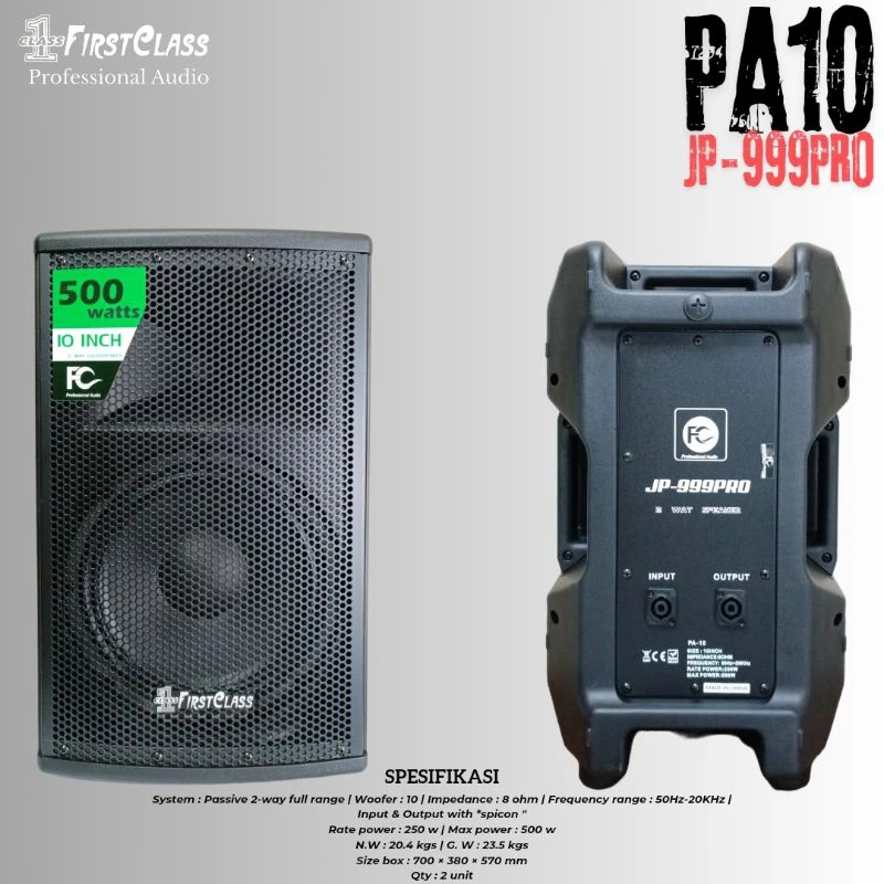 Firstclass JP 999PRO PA 10 Speaker Pasif 10 Inch 2 Way 8 Ohm 500 Watt