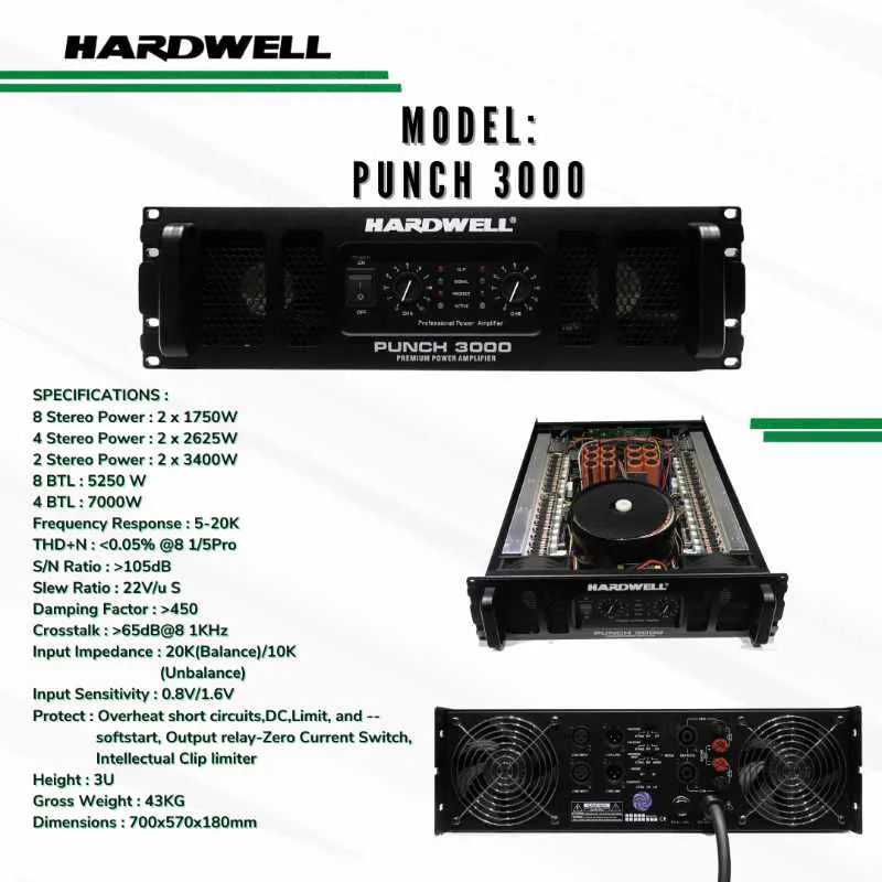 - 2 stereo power: 2 x 3400W