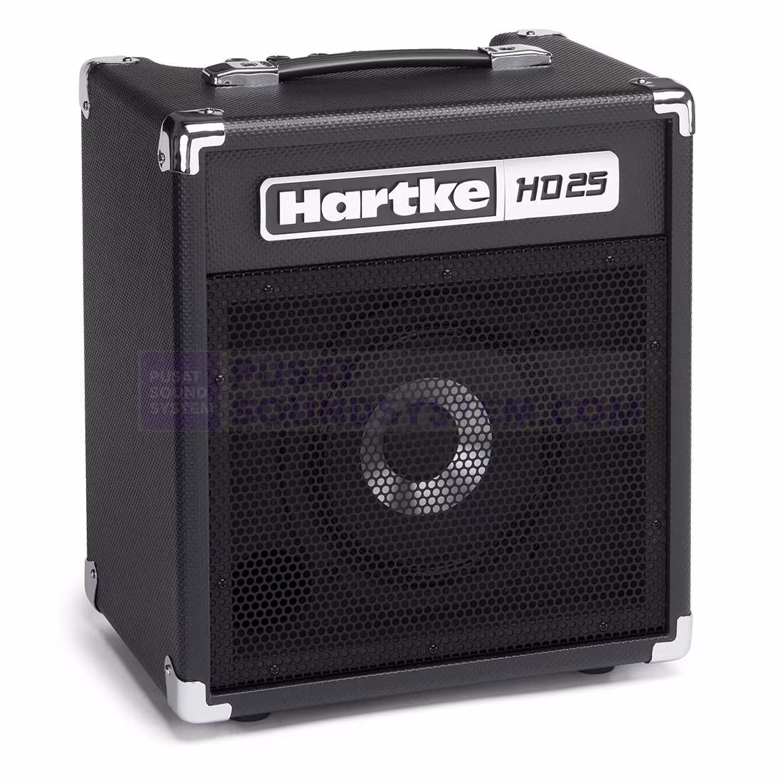 The HD25 (25 watts, 8″ driver) employs Hartke’s patented HyDrive Speaker Technology that offers a carefully crafted hybrid (half paper, half aluminum) cone bass speaker. By combining the warmth and roundness of paper with the punch and attack of aluminum, the HyDrive design produces serious tone that is ideal for bass players of all genres and styles.
