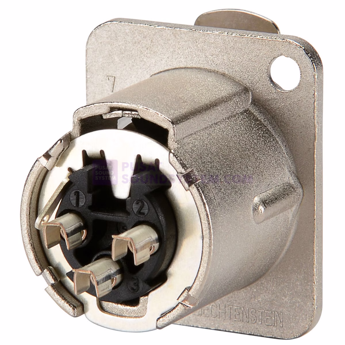 3 pole female receptacle, solder cups, Nickel housing, silver contacts