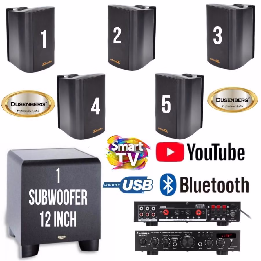 Paket Audio Cafe, Dusenberg 4 Inch 5 Titik, 1 Subwoofer 12 Inch Aktif