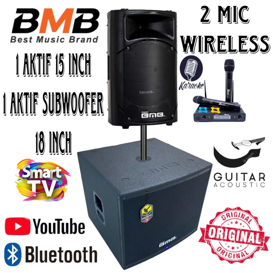Paket Sound BMB 1 Aktif 15 Inch, 1 Subwoofer 18 Inch, 2 Mic Wireless.!