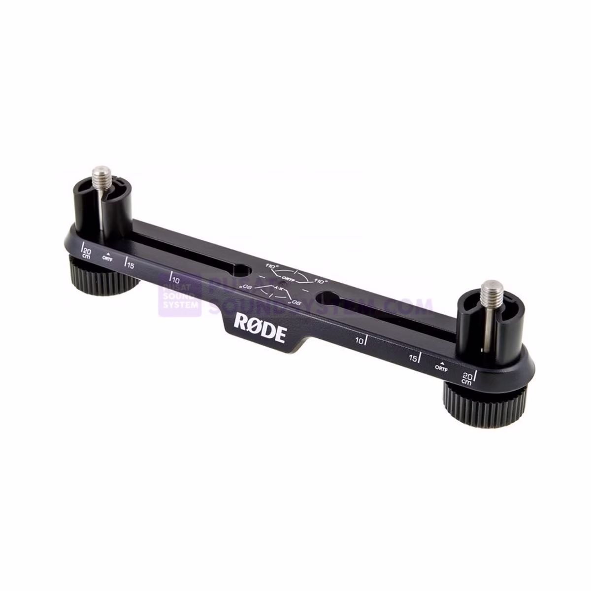 The RØDE Stereo Bar is a robust solution for mounting two microphones in a stereo array. With clearly marked spacing of up to 20cm, as well as angle and measurement indicators for ORTF and XY positioning, the RØDE Stereo Bar makes it quick and easy to achieve complex recording arrays. The 5/8” mounting threads are supplied with accompanying spacing clips to allow for easy positioning for stacked arrays, and the robust ABS construction makes the Stereo Bar stable and durable, allowing it to easily support the weight of two large diaphragm microphones such as the RØDE K2.