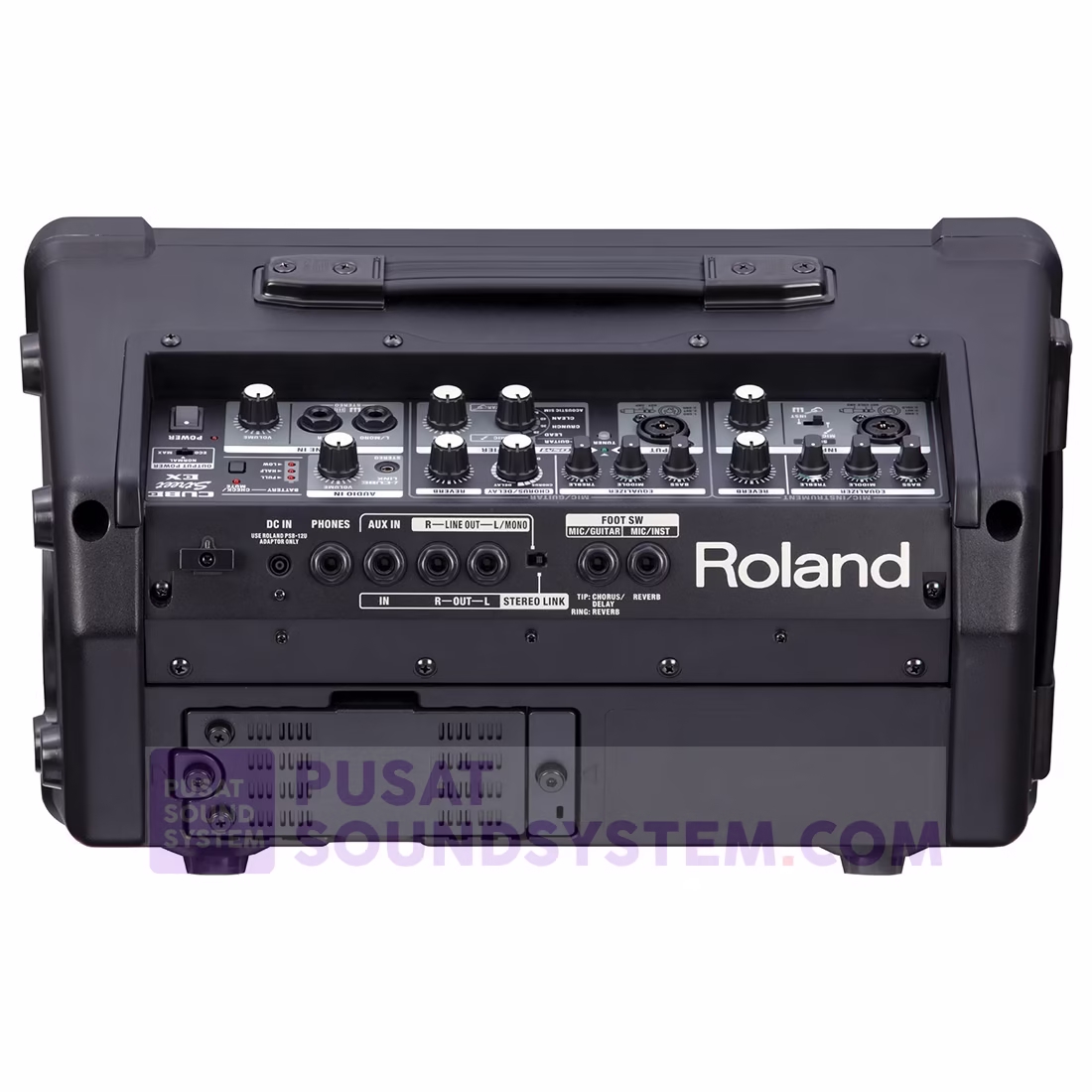- Innovative new Roland technology provides 50 watts of stereo power from eight AA-size batteries