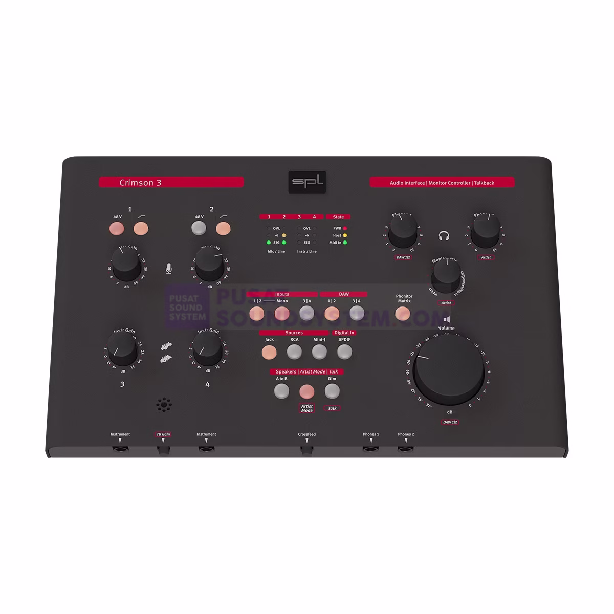 Since its introduction, the SPL Crimson audio interface has garnered legions of fans and earned a reputation for delivering professional-grade recording, monitoring, and bang for the buck. Now SPL ups the ante with the Crimson 3, which includes all the great features of its predecessor, and adds exciting new features that will improve the quality of your recordings and streamline your workflow. Phonitor Matrix is a cross-feed function that makes working on headphones more accurate and speaker-like. Crimson 3’s Talkback function now lets you communicate more flexibly with talent and collaborators, overcoming one of the drawbacks of today’s DAW-based studios. Sweetwater’s advice: with a total of 16 inputs, two discrete mic preamps, six recording and playback channels, and a monitor controller, proven analog circuitry, and high-quality AD/DA conversion, Crimson 3 is a powerful hub for your studio.